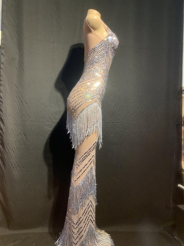 2020 New Design See Through Fringes Diamond Dress Womens Birthday Celebrate Mesh Long Stage Costume Dance Outfit From Beenling 165 85 Dhgate Com