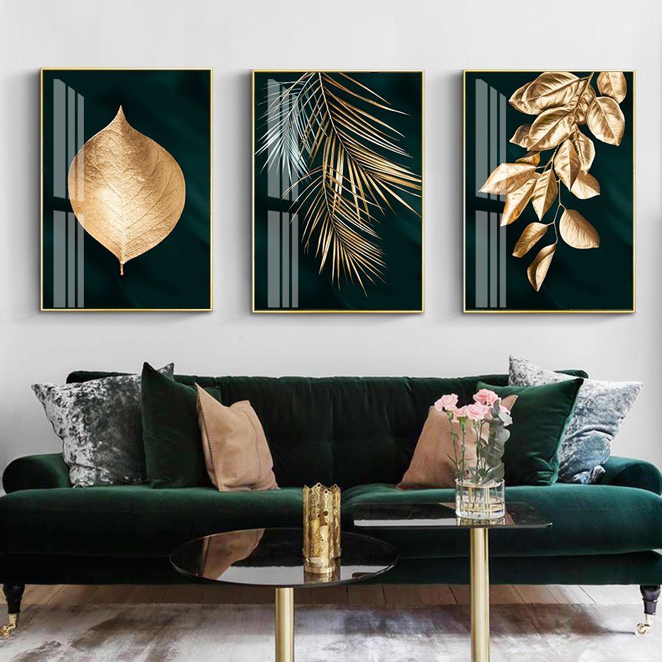 Compre Escuras Modern Fundo Verde Folhas Douradas Lona Pintura De Parede Art Prints Poster Pictures Para Sala Casa Interior Decor De Goodcomfortable, $26,2 | Pt.Dhgate.Com